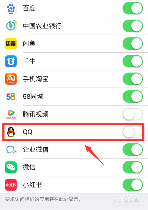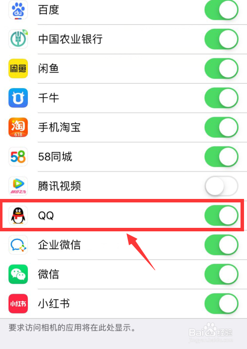 在相机里面,看到QQ后面按钮是封闭,我们将其打开酿成绿色;