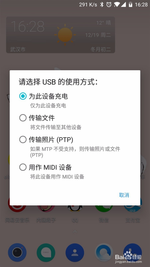 然后点开可以看到良多种文件传输环境,本家儿要有:1.为此设备充电2.传输文件3.传输照片4.作为MIDI设备