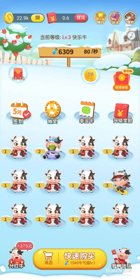 接着我们把牛经由过程合当作进级,可以获得大量金币,金币可以用来开红包。