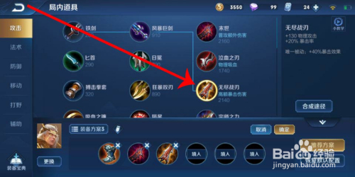 第三件装备:无尽战刃。增添危险和暴击、暴击危险结果,这样鲁班就有危险了。如下图所示。