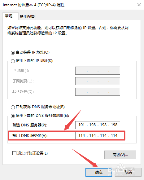 然后将备用DNS办事器设置当作114.114.114.114即可。