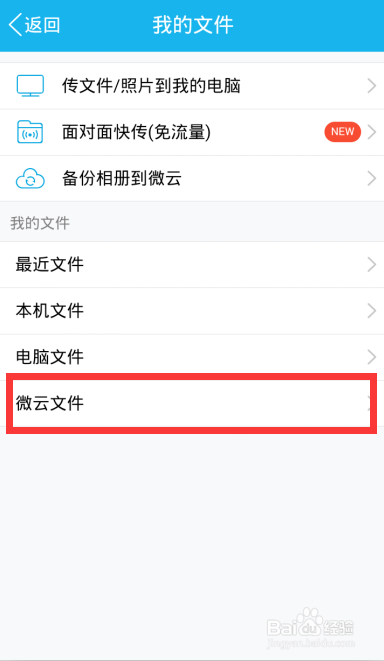 进入我的文件页面,在最下方我们可以看到微云文件,点击打开
