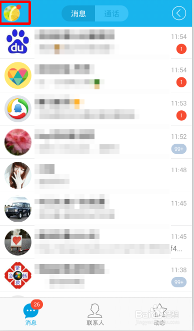 在手机上登岸小我QQ,进入到动静页面窗口,点击左上角的小我QQ头像