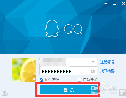 在电脑上打开QQ,输入小我账号以及密码,点击登录