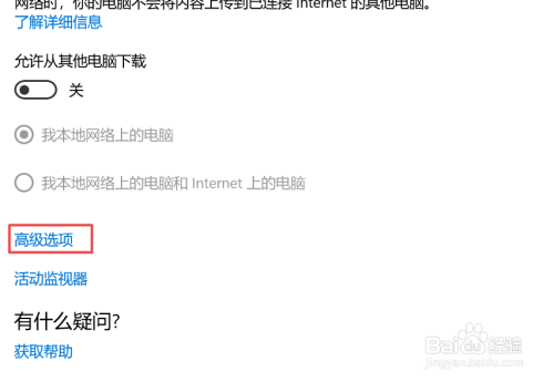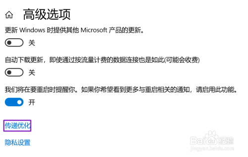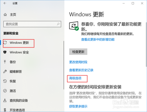 弹出的界面,我们Windows更新,然后点击高级选项;