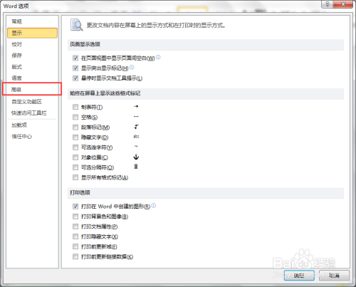 在打开的Word选项页面中,左侧菜单栏找到高级按钮,点击打开
