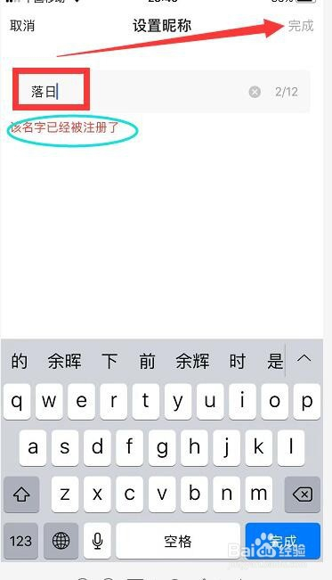 若是是没有效户利用过的昵称,输入后,点击“完当作”就可以当作功点窜昵称了。