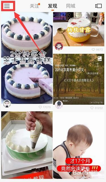 1、快手中,点击左上角三条短横线符号,然后点击小我头像,再点击“完美资料”