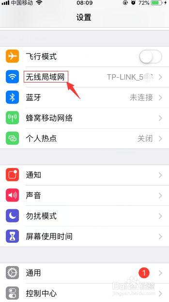 进入“无线局域网”菜单选项,点击右侧偏向键进入。