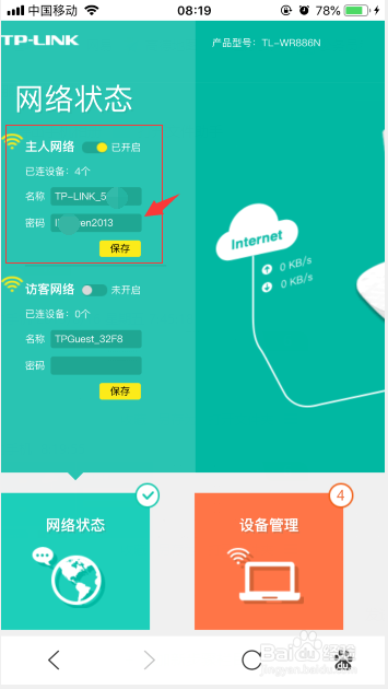 用手机打开路由器网址之后,输入办理员密码,进入本家儿页,就可以清晰的看到左侧显示着该无线路由器的账号及密码。