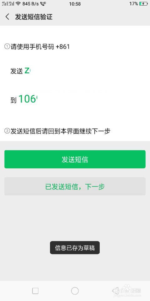 最后按提醒发送信息就可以注册微信账号了,如下图所示。