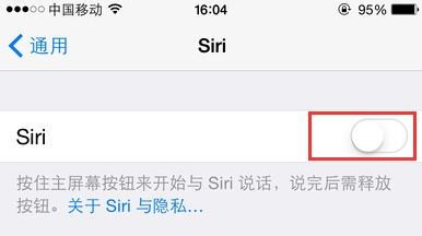 进入Siri设置页面,这时系统默认是没有开启的,点击右侧的开关,想左滑动打开