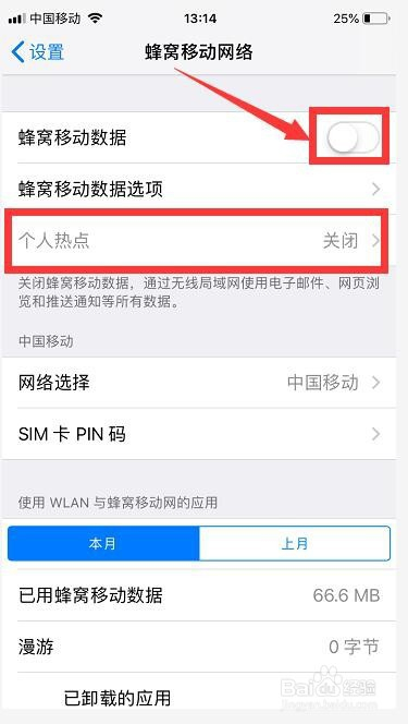 设置中有个“蜂窝移动收集”,若是是封闭状况,即即是小我热点之前处于开启状况也会被封闭,其他设备就看不到您手机的小我热点了。