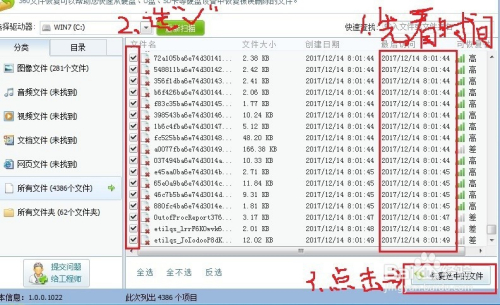经过扫描后,电脑出现了大量被删除了的文件,这时候我们只要找一下,最近误操作的时间点就好了,如小编14日误删的,所以我们只要在相应时间的前面打钩就好。如下图;最后点击“恢复选中的文件”;