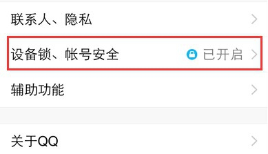 进入到手机QQ的小我设置页面,往下翻页,在差不多页面的最底部,有一个设备锁、账号平安栏目,点击打开