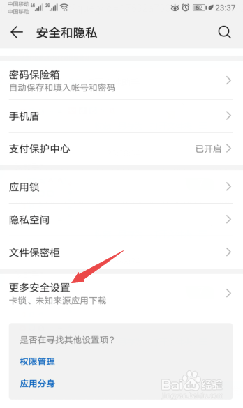然后点击更多平安设置;