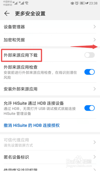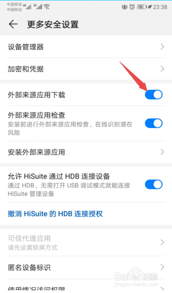 然后将外部来历应用下载的开关标的目的右滑动;