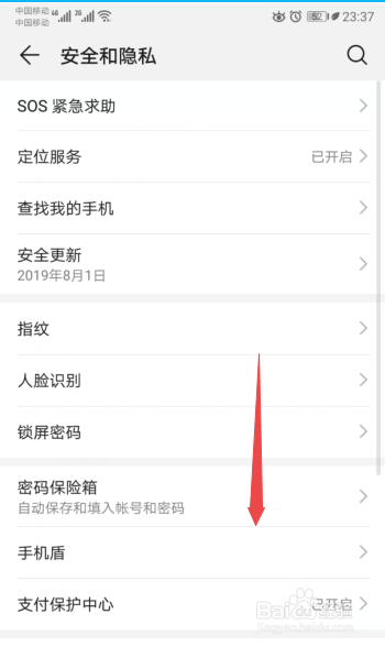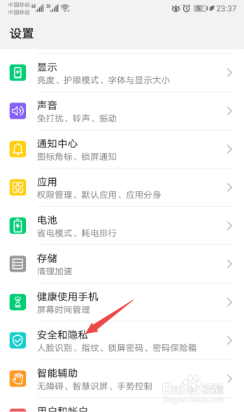 之后点击平安和隐私;