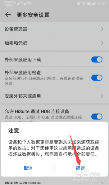 成果如图所示,这样我们就开启了外部来历应用下载了。这样我们也就可以安装软件了。