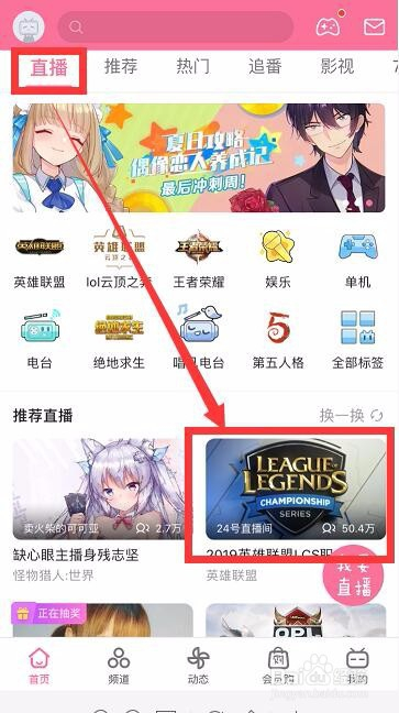 回到首页中,在直播栏面前目今,点击一个直播视频进入播放页面