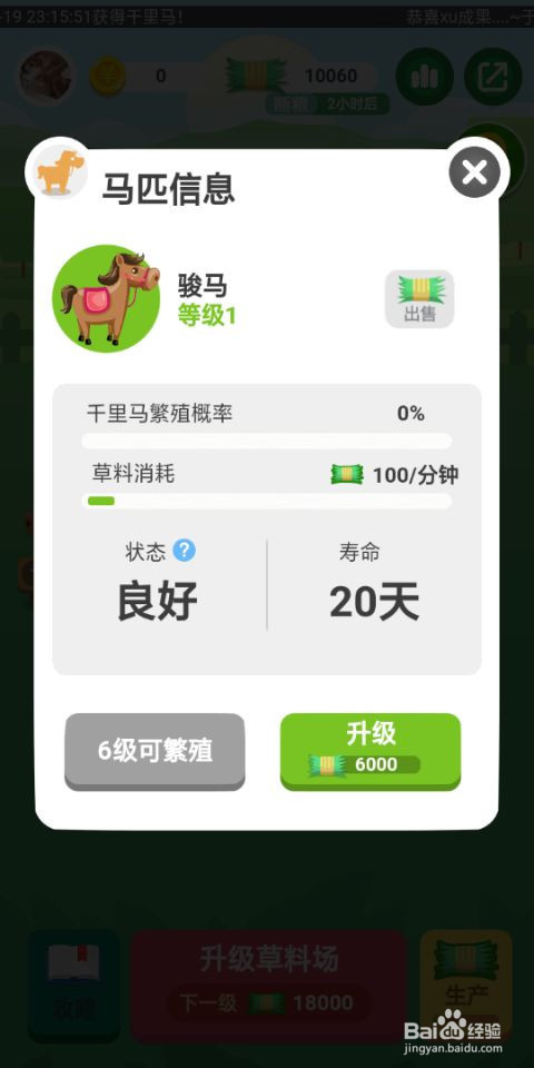 草料数目达到马匹进级要求就可以进级了,如下图所示。