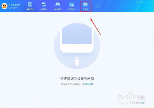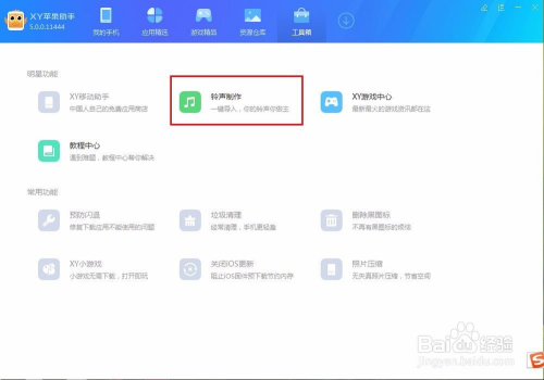 首先打开软件,没有的自行百度下载安装,我们打开软件之后,在最上边的一排有一些选项,这是软件的一些功能选项,找到最后一个选项,也就是东西箱选项,这里就有我们所需要的铃声建造功能,选中它,然后点击进入,如图: