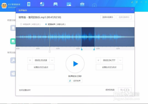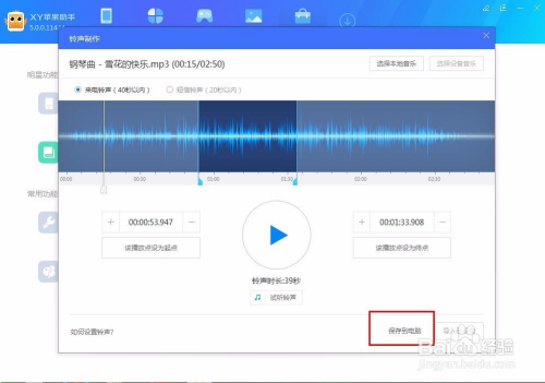 在设置好音乐的起点和终点之后,就可以选择播放按钮下方的试听铃声,感觉不对劲还可以从头点窜或是微调,感觉挺和心意就记得保留,选择右下角的保留到电脑选项。