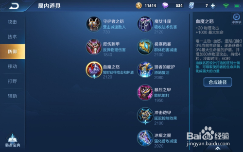 第6件装备选择出血魔之怒,本家儿要的感化是本家儿动点击,获取生命值和护盾,可以保命。
