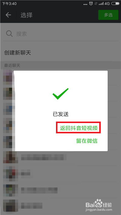 这样就完当作微信老友的添加了,点击【返回抖音短视频】。