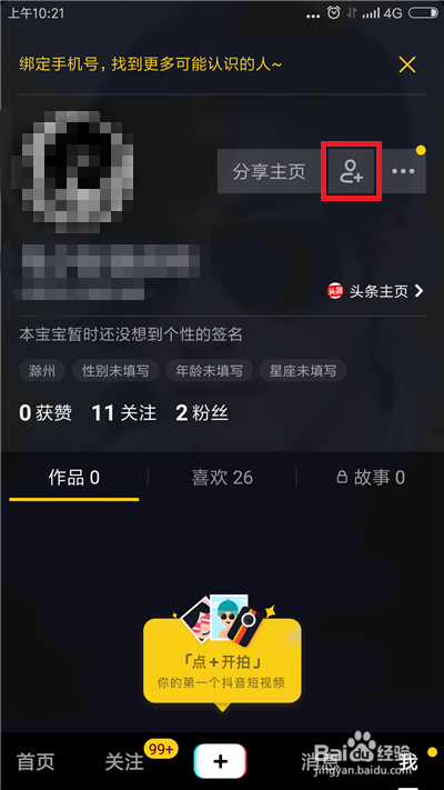 在我的界面中找到如图所示的带加号的图标,这个就是添加老友的图标。