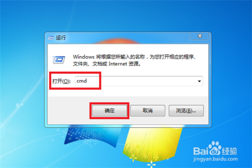 返回电脑桌面,同时按下电脑上的【windows】+【R】按键打开运行功能,输入【cmd】并点击【确定】。