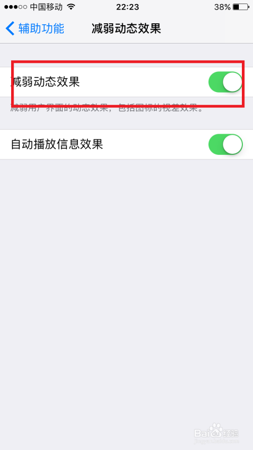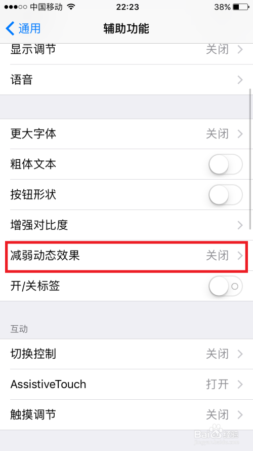 在辅助功能的设置界面,有一个削弱动态结果的选项,点击进去,然后把后边的开关打开,这样可以削减动态结果,达到减缓卡顿的结果。