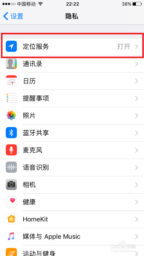 接着打开隐私选项,在隐私的设置界面,第一个选项就是定位办事选项,点击进入进行设置。