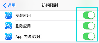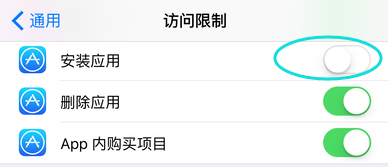 进入App Store拜候限制的设置页面,这时可以看到“安装应用”是处于封闭状况,一般这个时辰,手机本家儿屏上是找不到App Store应用图标的