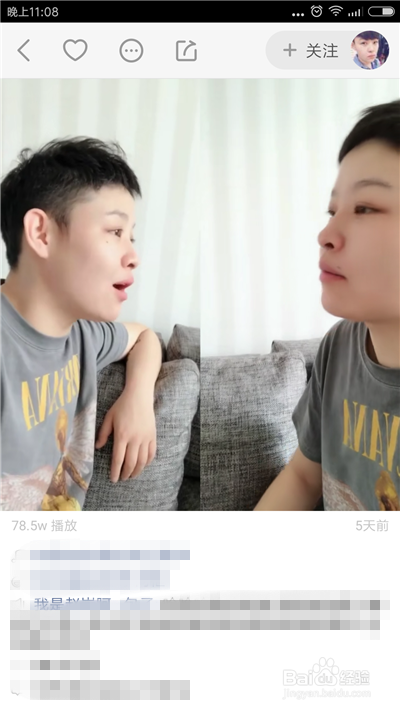 所以,快手中的视频并不像抖音中的一样可以随便合拍,必需视频的作者勾选了这个功能才可以,像下面的这个短视频就可以进行合拍。