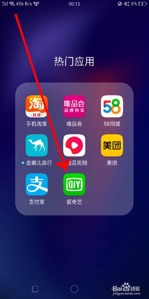 首先在手机页面上点击【爱奇艺】,如下图所示。