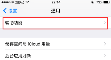 这时,进入到通用设置页面傍边,往下翻页,找到【辅助功能】选项,点击打开它