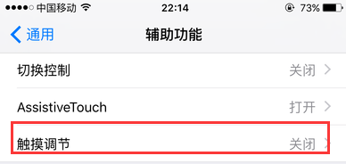 返回到本来的辅助功能页面,这时【触摸调节】是处于开启状况