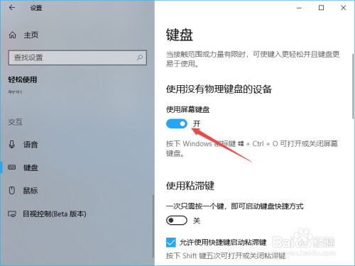 弹出的界面,我们将利用屏幕键盘的开关标的目的右滑动;