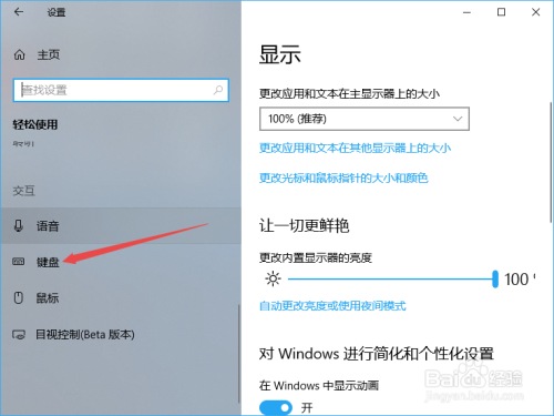 弹出的界面,我们找到键盘,然后我们点击打开它;