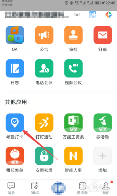 首先,我们打开我们的手机,然后我们点击钉钉;