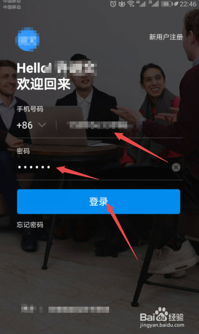 之后我们先注册一下,然后我们输入手机号码和密码,之后点击登录;