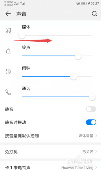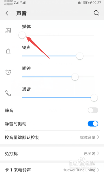 然后可以看到媒体的音量处于封闭状况,也就是这个原因导致看抖音没声音的。
