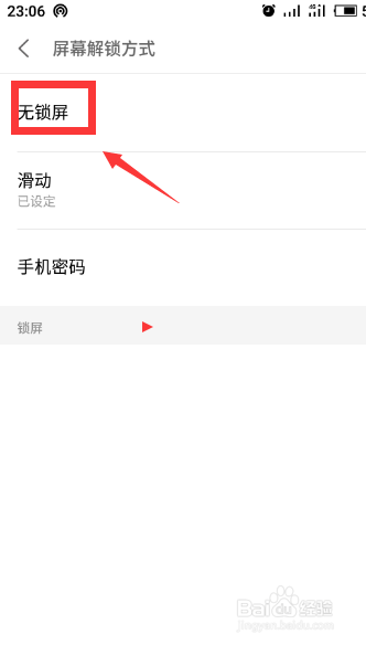 点击锁屏密码菜单,可以看到之前设置装备摆设的信息已经打消了。可以从头设置加上。