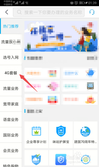 之后点击4G套餐;