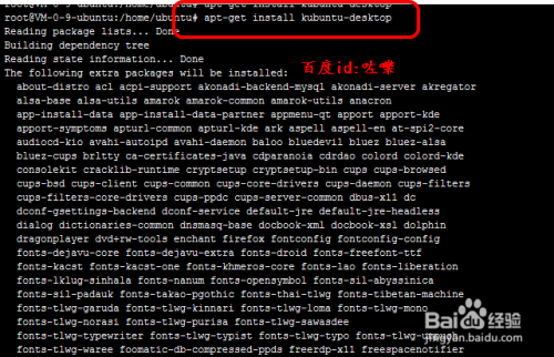 然后是安装ubuntu桌面包,apt-get install ubuntu-desktop,当然这里有良多类型的桌面这里咗嚛用的是kubuntudeskto