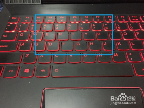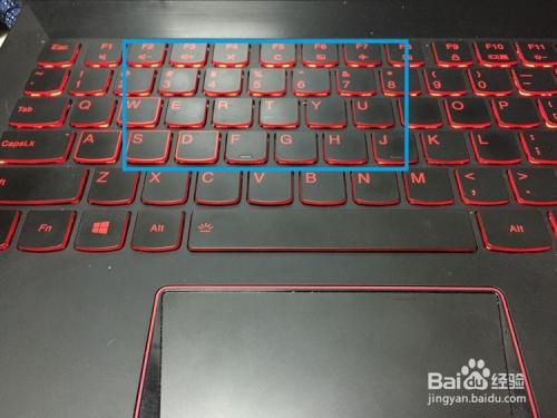 按一次组合键,键盘灯就会亮起来,键盘灯是特有的红色光,按第一次的光线是比力暗的。