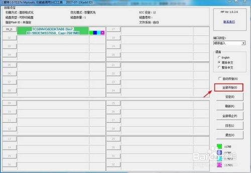 接着回到之前的量产界面,然后点击右侧的全数起头选项,这个时辰就起头量产修复的过程了。