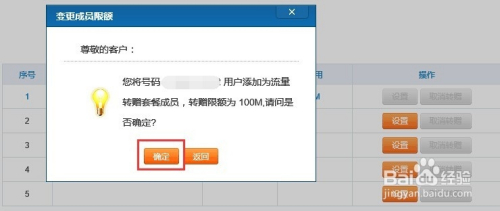 这时,系统提醒是否将该用户添加为流量转赠套餐当作员,直接点击确定即可