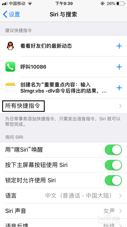 在Siri与搜刮页面中选择点击“所有快捷指令”选项。